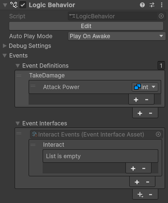 You can define custom events directly on objects that contain a Logic Controller, such as Logic Behavior or Logic Asset.