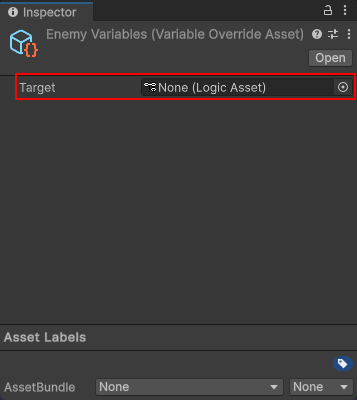 - In the Inspector window, select the Logic Asset you want to use for the Target property.