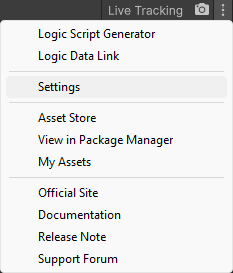 - Click the “⋮” button on the toolbar of Logic Editor and select Settings from the menu.