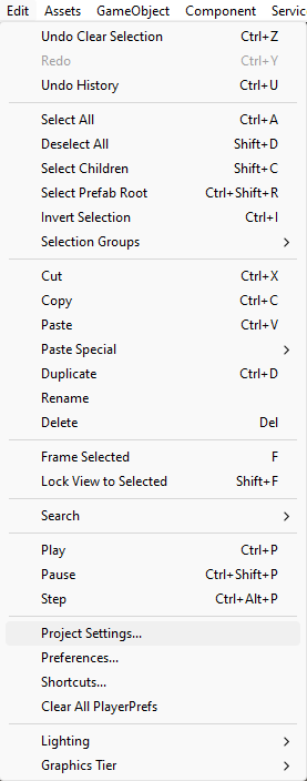 - Select Edit > Project Settings from the menu to open the Project Settings window.